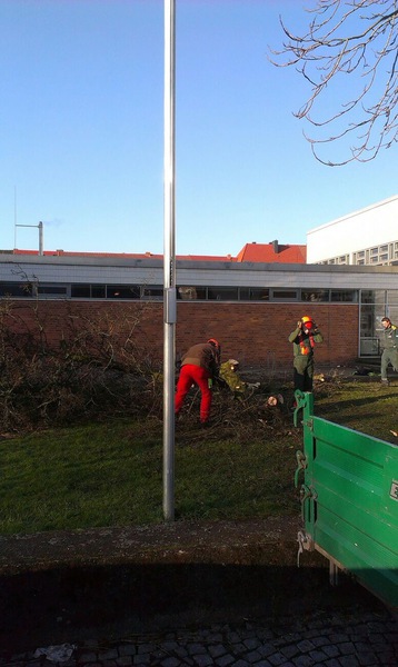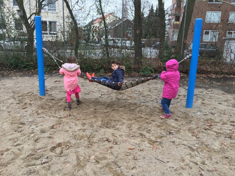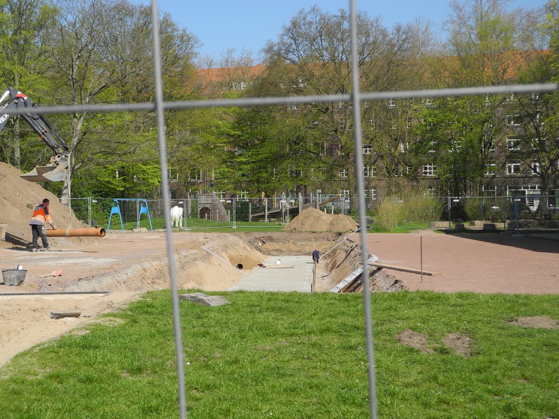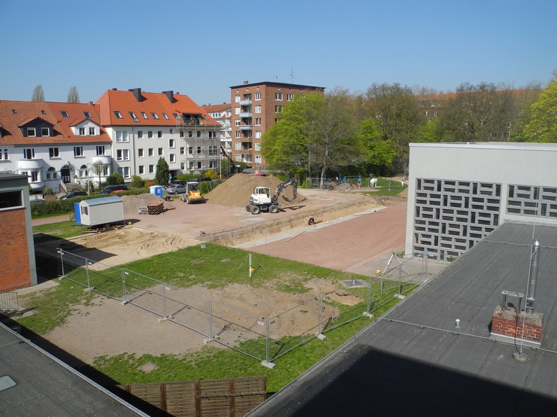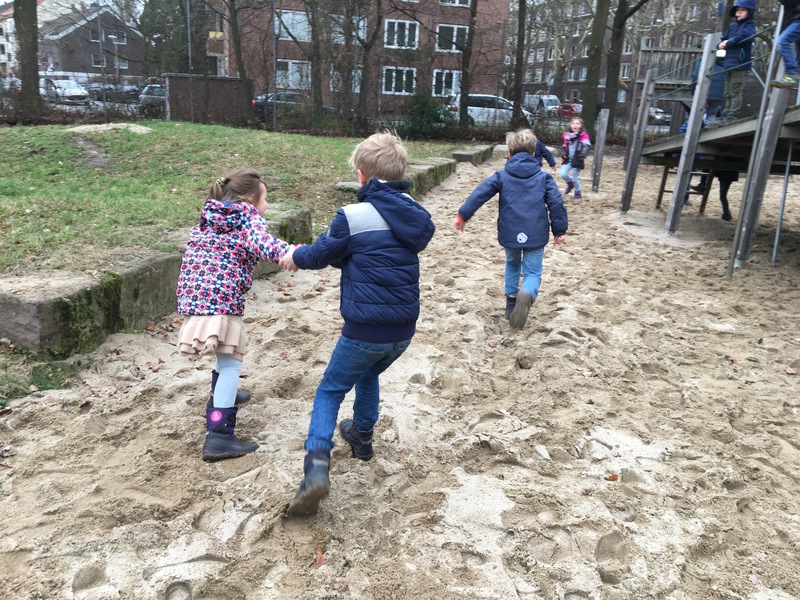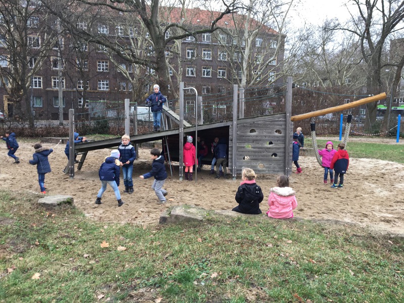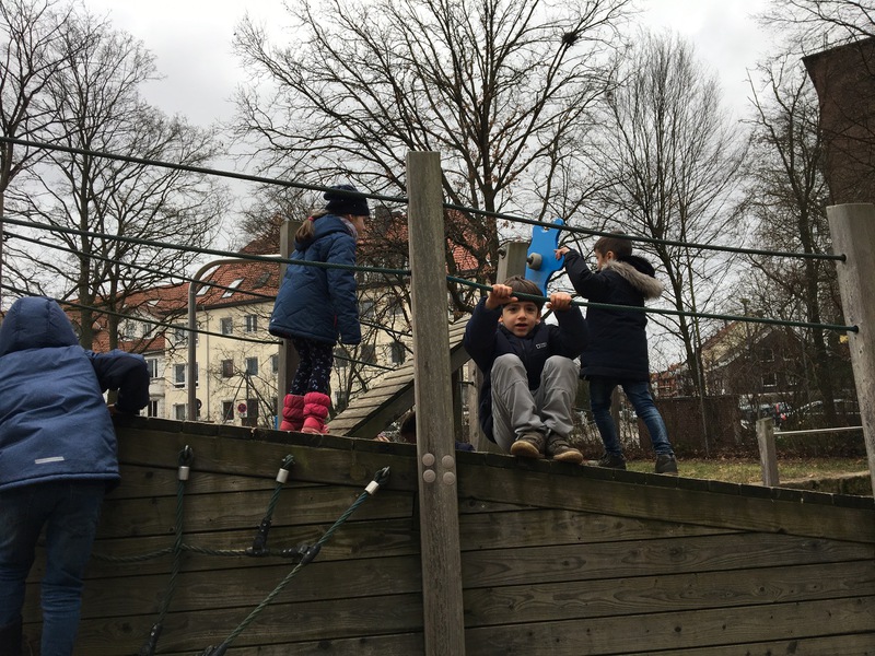 Endlich ist der Schulhof mit dem Piratenschiff wieder geöffnet und das Schiff wird sofort von der Klasse 1d geentert.